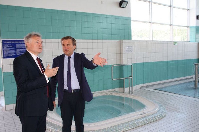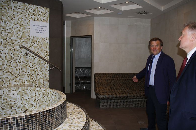Wraz z wójtem gminy zapoznał się z wszystkimi atrakcjami jakie oferuje Aqua Centrum Chełmiec, a przy okazji na ręce wójta złożył wyrazy uznania dla wszystkich mieszkańców gminy z powodu wybudowania tak pięknego i nowoczesnego obiektu.