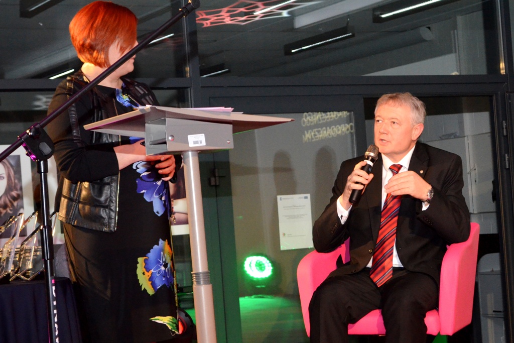 W imieniu Zarządu Spółki Tymbark statuetkę z rąk Wiceministra Finansów - Wiesława Janczyka oraz Leszka Zegzdy - Członka Zarządu Województwa Małopolskiego odebrał Starosta Limanowski - Jan Puchała.