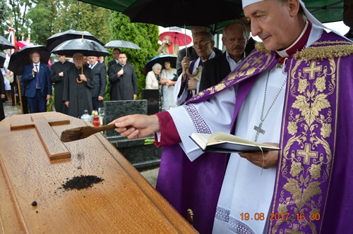 Po mszy św. odprowadzono zmarłego na cmentarz miejski gdzie został pochowany. W ostatniej drodze ziemskiej towarzyszyły mu tłumy wiernych, którzy w ten sposób oddali hołd i wdzięczność za wieloletnia posługę, niesioną pomoc, za liczne wygłoszone homilie, za słowa wsparcia i niezliczone rozmowy.