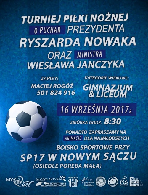 Zapraszam drużyny piłkarskie do udziału w Turnieju Piłki Nożnej, który odbędzie się w dniu 16.09.2017r. o godzinie 9.00 w Nowym Sączu na osiedlu Poręba Mała.
