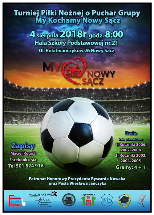 Warto podkreślić, iż Grupa My Kochamy Nowy Sącz po raz kolejny wychodzi z inicjatywą turnieju piłkarskiego. Zawody rozegrane zostaną w dwóch kategoriach wiekowych: roczniki 2006, 2007, 2008 oraz roczniki 2003, 2004, 2005