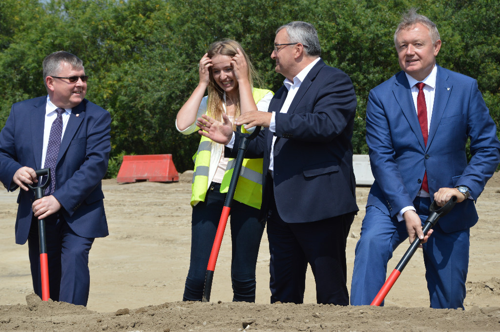 Uroczystość wbicia łopaty na budowie mostu w Kurowie w ciągu Drogi Krajowej 75